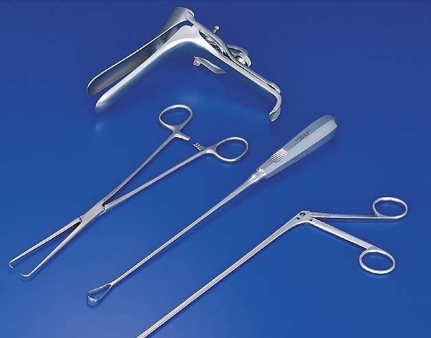 雙翼陰道擴張器、宮頸擴張鉗、陰道拉鉤、子宮頸擴張器、子宮探針、子宮頸活體取樣鉗、子宮刮、子宮刮匙、胎盤鉗、產鉗、陰道牽開器、骨盆測量計、婦科組織鉗、子宮夾持鉗,子宮抓鉗、齊柏林鉗、子宮動脈鉗、敷料鉗、子宮鉗、舉宮鉗、陰道夾持鉗、卵巢夾持鉗、子宮剪,陰道環切剪、會陰剪、臍帶剪、壓板、子宮拉鉤、陰道拉鉤、深部拉鉤